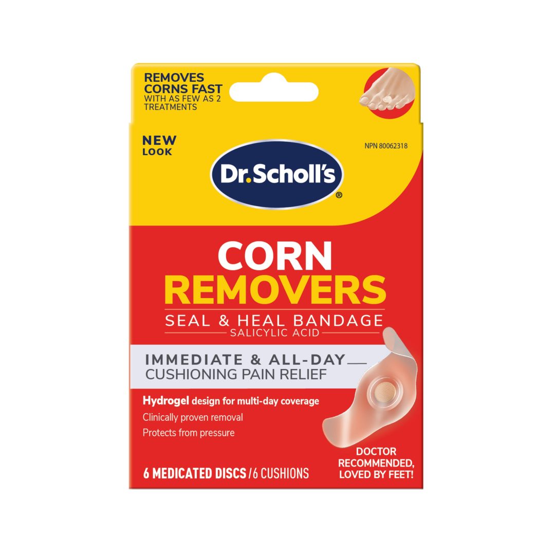 - Dr. Scholl’s® Corn Removers with Hydrogel technology provides corn treatment and cushioning protection against shoe pressure and friction to relieve pain.